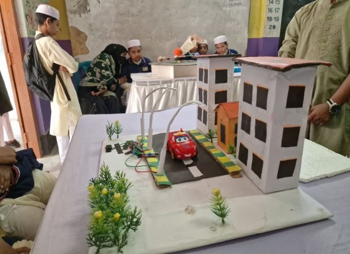 বিজ্ঞানের অগ্রযাত্রায় নিজেদের শামিল করে বড় সম্ভাবনার কথা জানিয়ে দিল মাদরাসার খুদে বিজ্ঞানীরা| তারা দেখাল বাতাসে অক্সিজেনের মাত্রা বাড়ানোর যন্ত্র, স্মার্ট ফার্মিং সিস্টেম, অটোমেটিক স্ট্রিট লাইট, প্লাস্টিক থেকে জ্বালানি উদ্ভাবনের কৌশল, লেজার সিকিউরিটি সিস্টেম, নবায়নযোগ্য জ্বালানির ব্যবহার, পাওয়ার জেনারেটর, সোলার সিস্টেম, জোয়ার-ভাটার নদীর জন্য হাইড্রোলিক ব্রিজের মত প্রকল্প| তাদের চমকপ্রদ সব উদ্ভাবন বড়দেরও ভাবনার খোরাক যোগাল|